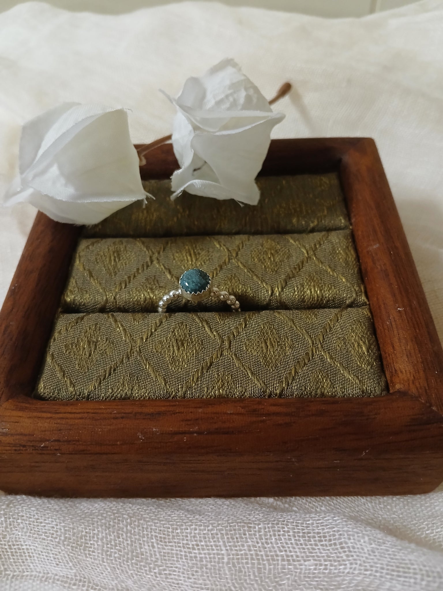 A delicate silver beaded band showcases a sparkling, deep‑blue turquoise stone set in a sunburst bezel. Perfect for everyday wear, this versatile piece adds a pop of color to any outfit. Crafted with high‑quality sterling silver and a genuine turquoise gem, it offers timeless style and subtle sophistication.